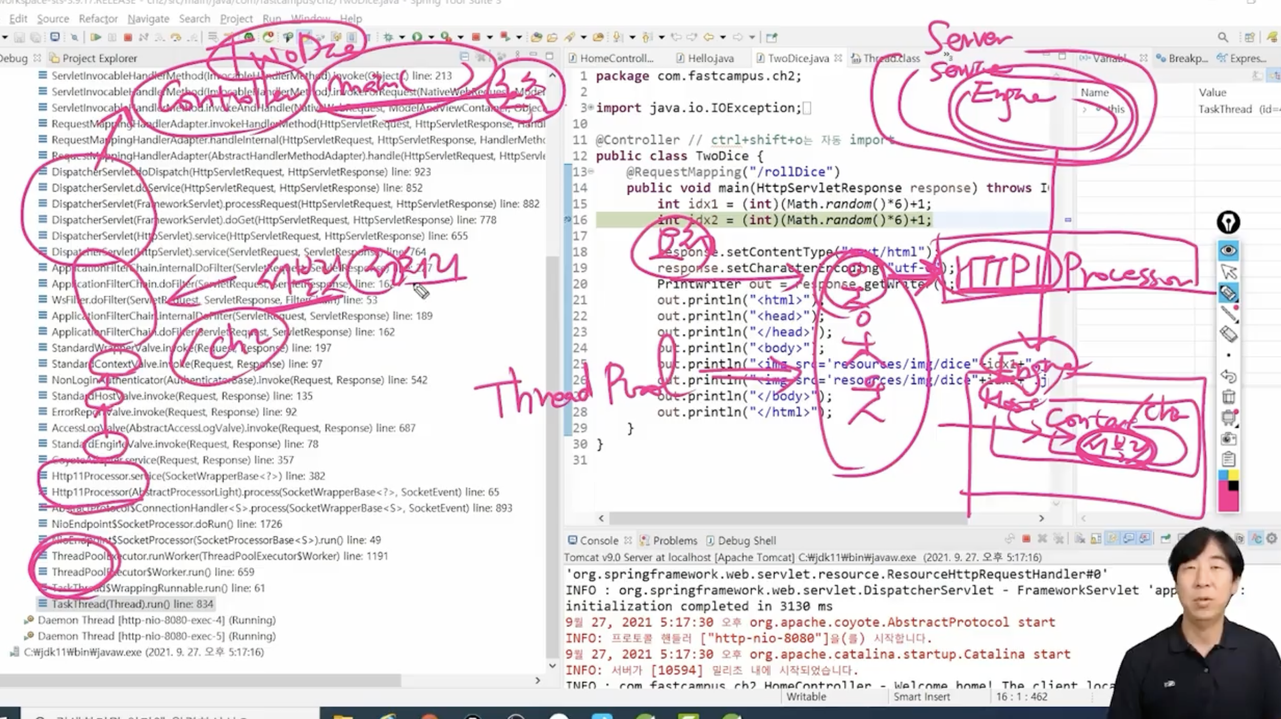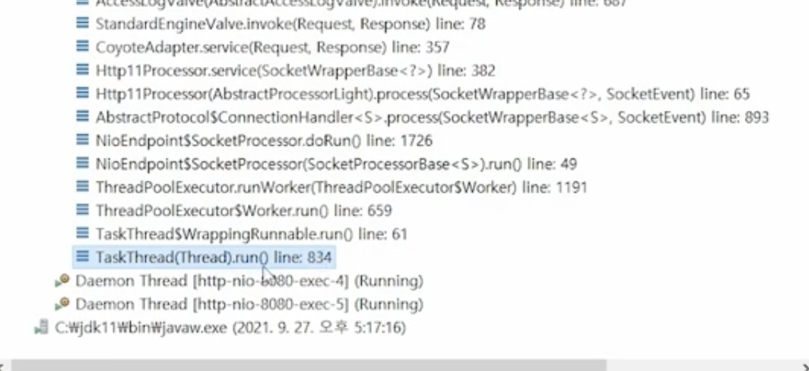 Thread Pool : ์ฐ๋ ๋๋ค์ ๋ฏธ๋ฆฌ ๋ง๋ค์ด๋์๋ค๊ฐ ์์ฒญ์ด ์ค๋ฉด ์ด ์ค์ ํ๋์ ์ฐ๋ ๋๊ฐ ๋งก์์ ์์ฒญ์ ์ฒ๋ฆฌํ๋ค.