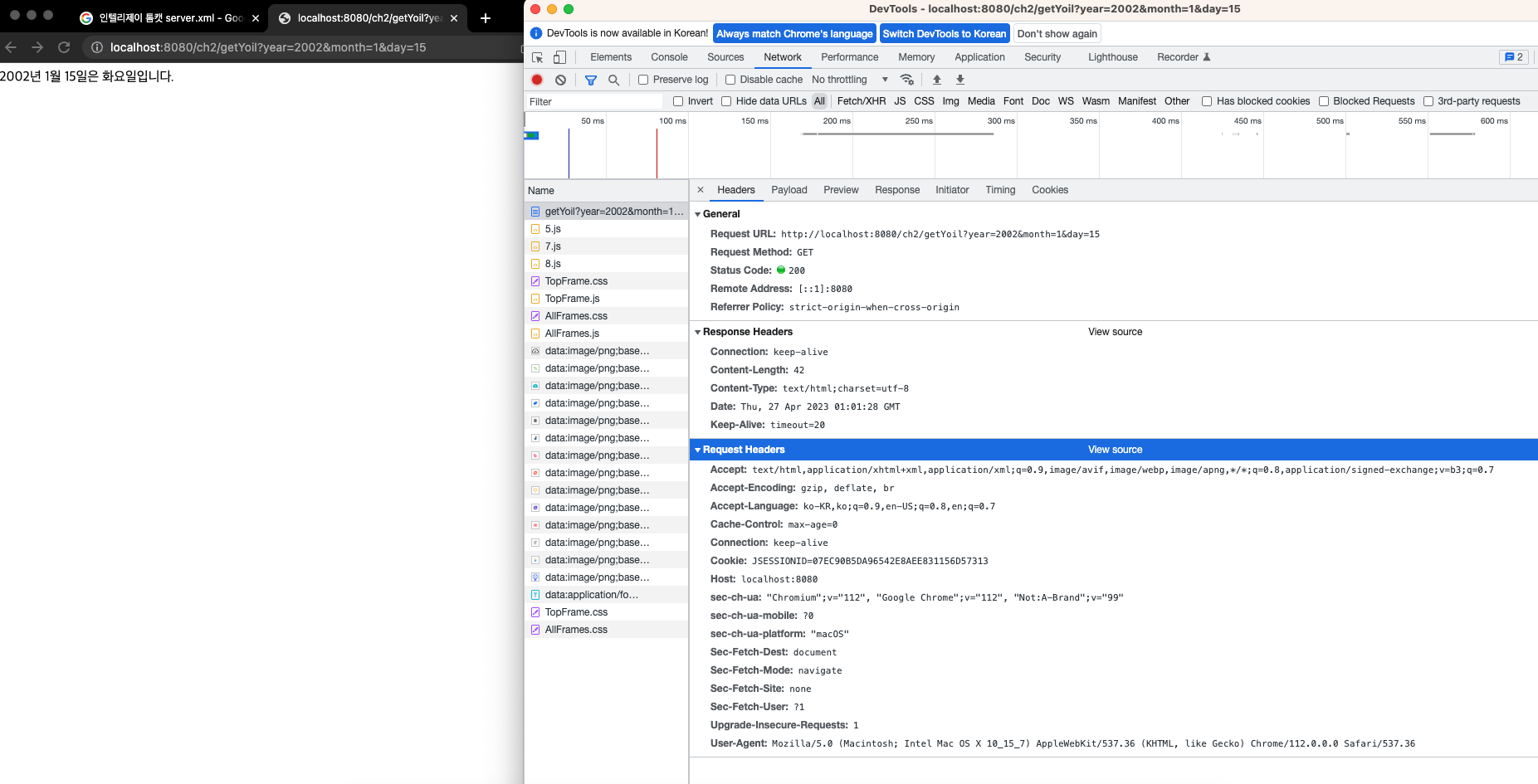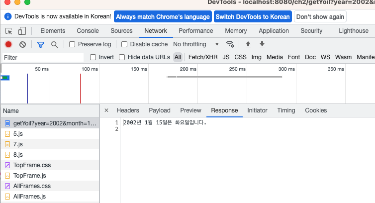 http://localhost:8080/ch2/getYoil?year=2002&month=1&day=15