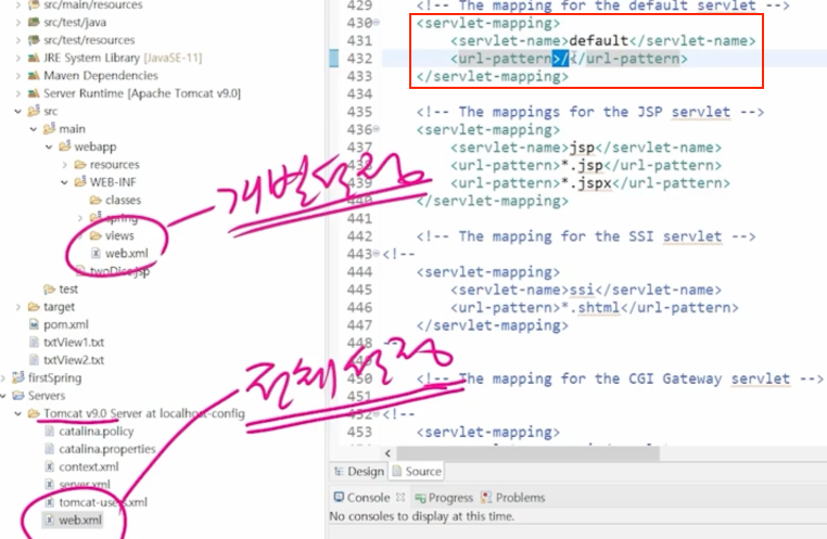 ์๋๋ default ์๋ธ๋ฆฟ์ด ๋ฐ๋๋ก ๋์ด์๋๋ฐ, ๊ฐ๋ณ ์ค์ ์์ DispatcherServelt์ด ๋ชจ๋ ์์ฒญ์ ๋ฐ๋๋ก ๋ฎ์ด์์์ ธ์๋ค.