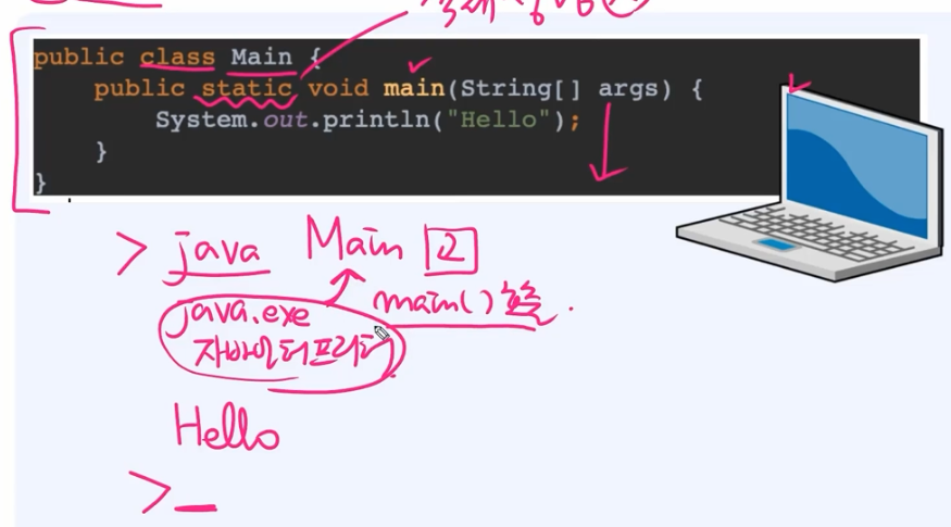- ํฐ์บฃ์ด main ๋ฉ์๋์ ๋งค๊ฐ๋ณ์๋ก ์์์ ๋๊ฒจ์ค๋ค.