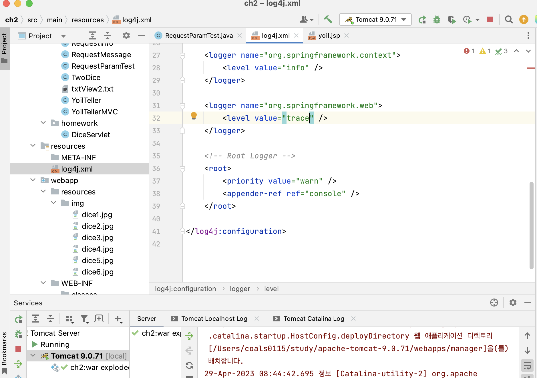 <logger name="org.springframework.web">