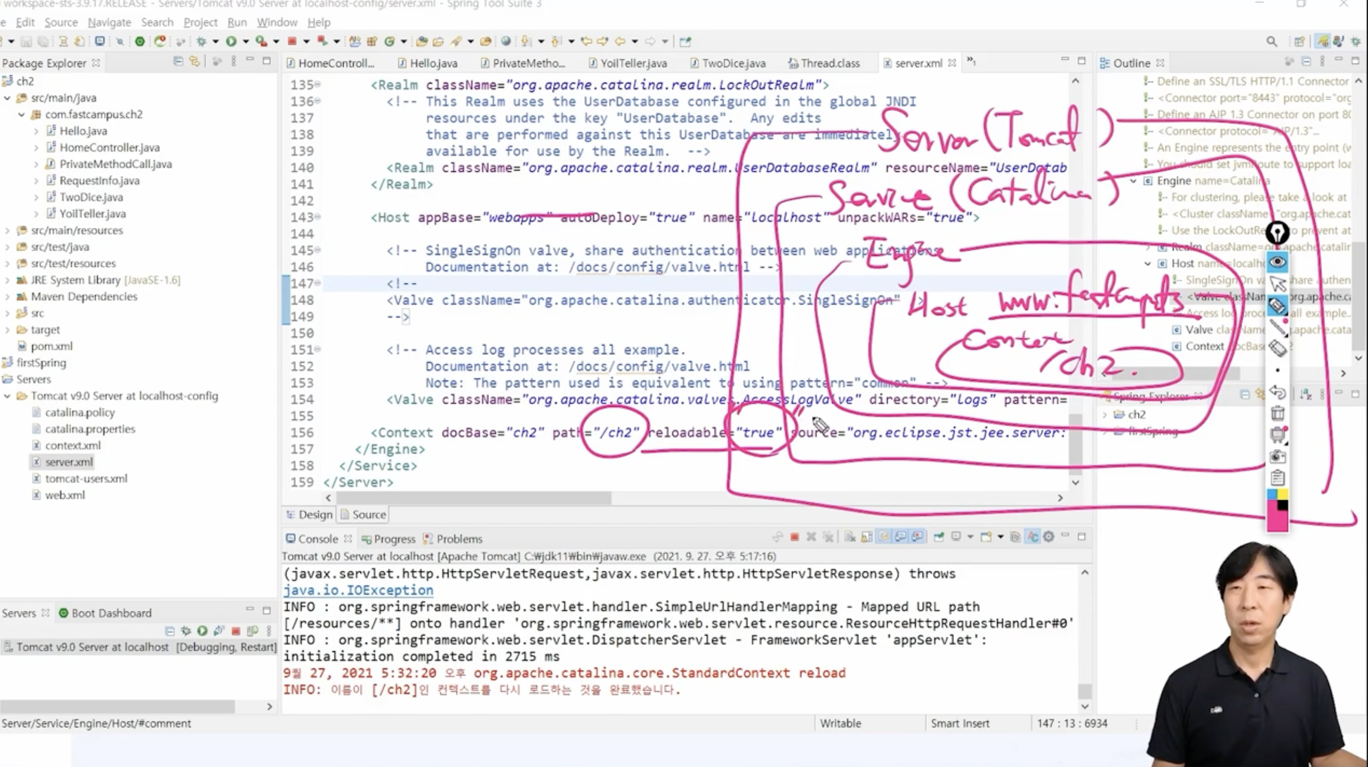 Tomcat Server์์ Service๊ฐ ์๊ณ ๊ทธ Service๋ฅผ ์ฒ๋ฆฌํ๋ ๊ฒ Engine