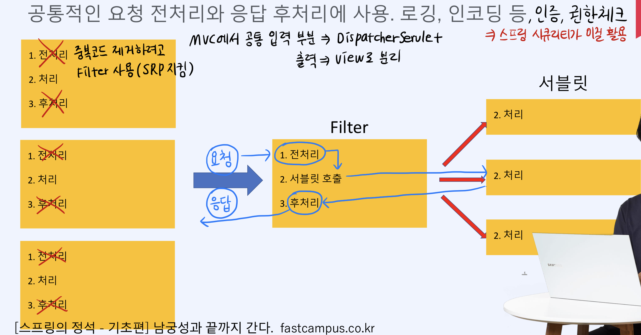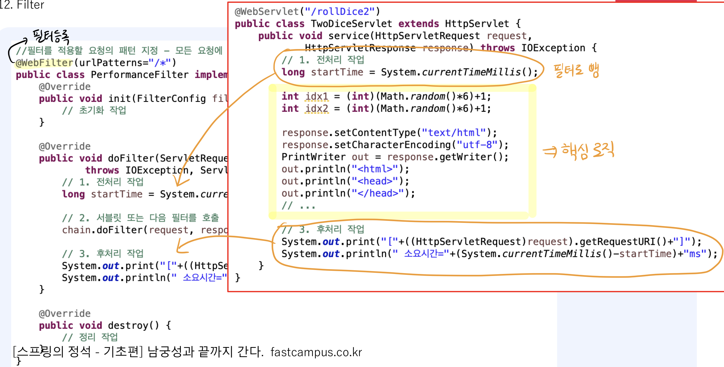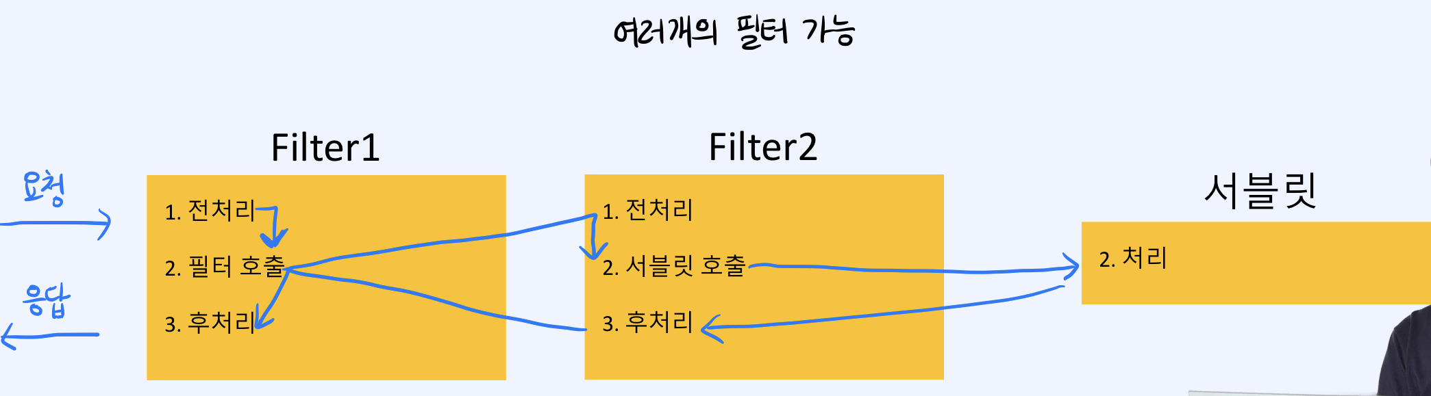response๋ ๋ง์ฐฌ๊ฐ์ง. ์ด ์ฝ๋๋ฅผ ์๋ธ๋ฆฟ์์ Filter๋ก ์ฎ๊ธด ๊ฒ