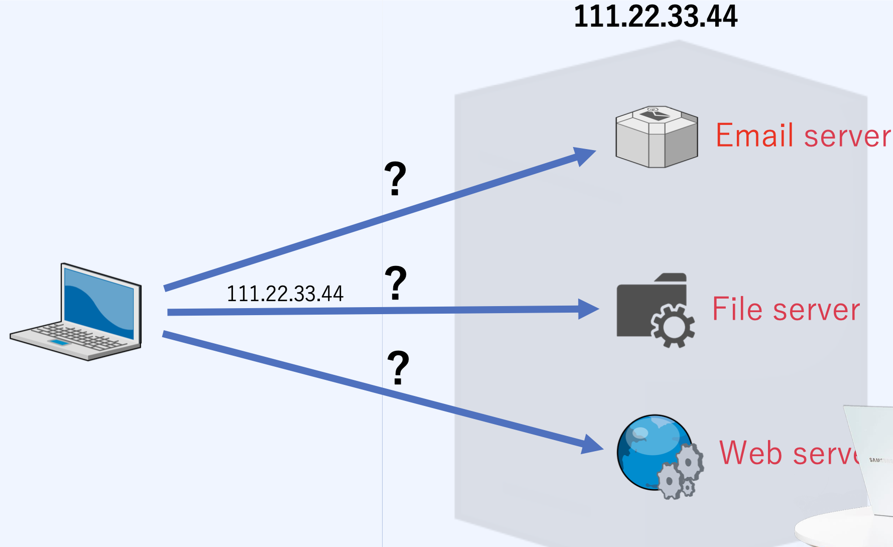 ํด๋ผ์ด์ธํธ๊ฐ IP๋ก ์์ฒญ ์ ํ ๋์ PC์ ์ฌ๋ฌ ๊ฐ์ ์๋ฒ๊ฐ ์กด์ฌํ๊ธฐ ๋๋ฌธ์ ์ด๋ค ์๋ฒ์ ๋ํ ์์ฒญ์ธ์ง IP๋ก๋ง์ผ๋ก ๊ตฌ๋ถ์ ํ์ง ๋ชปํ๋ค.