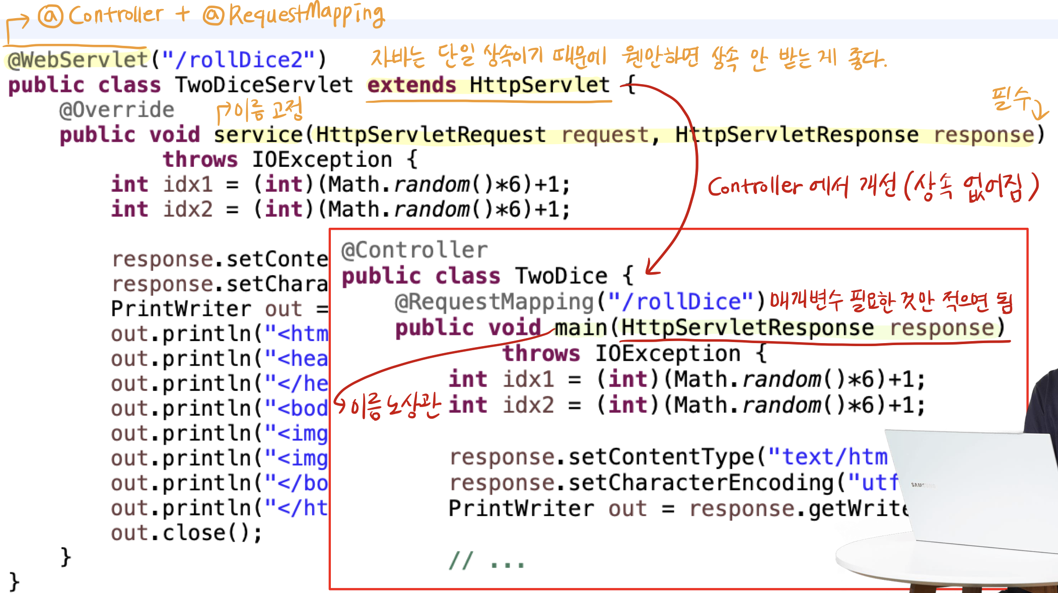 ์ปจํธ๋กค๋ฌ = ์๋ธ๋ฆฟ / ๋ ๋ค ์๋ฒ ํ๋ก๊ทธ๋จ