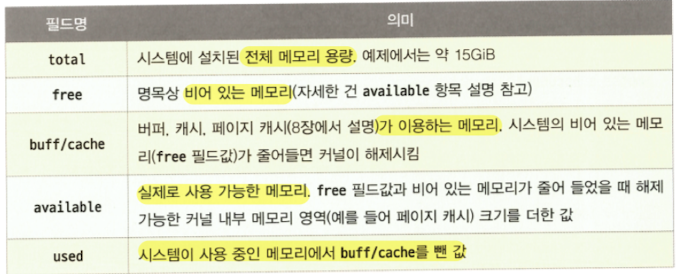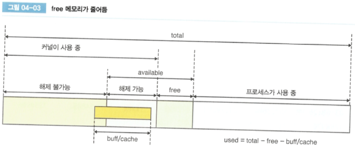 ๐ก๊ฒฐ๋ก : free ๋ฉ๋ชจ๋ฆฌ๊ฐ ์ค์ด๋ค๋ฉด ์ฌํ์ฉ ๊ฐ๋ฅํ ๋ฉ๋ชจ๋ฆฌ ์์ญ(buff/cache - ๋ฒํผ ์บ์, ํ์ด์ง ์บ์)์ ํด์ ํด์ free ๊ฐ์ ๋๋ฆฐ๋ค.