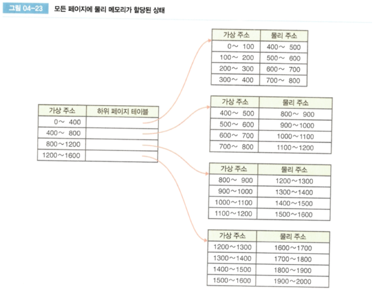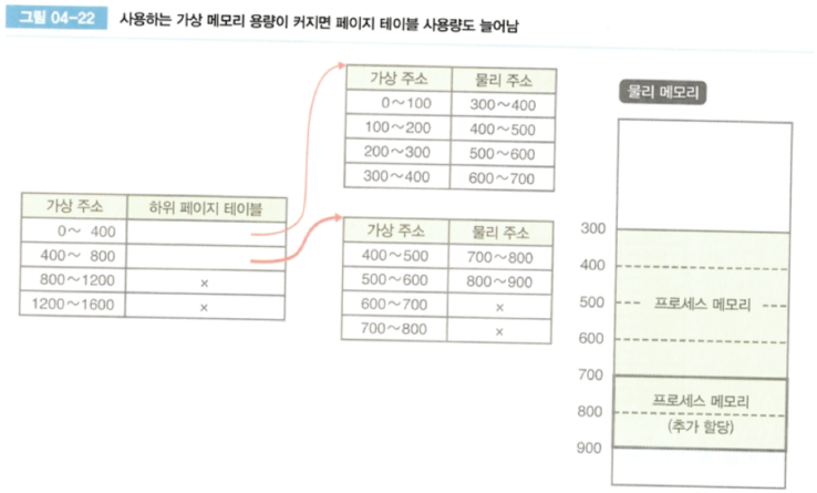 ์ด์ ๋นํด ๊ณ์ธตํ ํ์ด์ง ํ ์ด๋ธ์ ์ฌ์ฉํ๋ค๋ฉด, 4ํ์ด์ง๊ฐ ํ ๋จ์์ธ 2๋จ ๊ตฌ์กฐ๋ก ๋ง๋ค ์ ์๋ค.