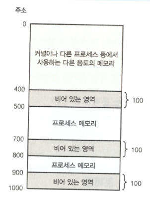 ํ๋ก์ธ์ค๊ฐ ์ฃผ์ 100์ ์ ๊ทผํ๋ฉด, ์ค์ ๋ก ๋ฉ๋ชจ๋ฆฌ์์๋ ์ฃผ์ 600์ ์กด์ฌํ๋ ๋ฐ์ดํฐ์ ์ ๊ทผํ๋ค.