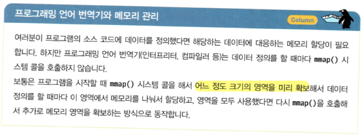 ํ๋ก๊ทธ๋ ์์ ์ mmap() ์์คํ ์ฝํด์ ์ด๋ ์ ๋ ํฌ๊ธฐ์ ์์ญ์ ๋ฏธ๋ฆฌ ํ๋ณดํ๋ค.