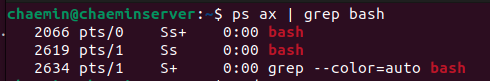 ๊ฐ ํ๋ก์ธ์ค์ ์ฐ๊ฒฐ๋ ๋จ๋ง : ps ax์ ๋ ๋ฒ์งธ ํ๋์์ ํ์ธ ๊ฐ๋ฅ