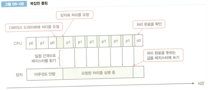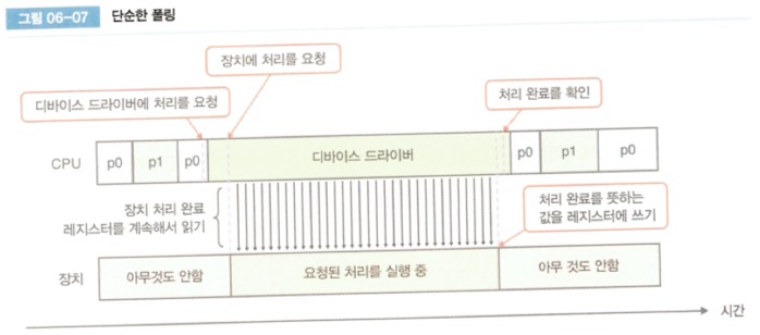 ๋๋ฐ์ด์ค ๋๋ผ์ด๋ฒ๊ฐ ์ฅ์น์ ์ฒ๋ฆฌ๋ฅผ ์์ฒญํ๊ณ ์ฒ๋ฆฌ ์๋ฃํ ๋๊น์ง ํ์ธ์ฉ ๋ ์ง์คํฐ๋ฅผ ๊ณ์ ํ์ธํ๊ธฐ ๋๋ฌธ์ CPU๋ ๋ค๋ฅธ ์ผ์ ํ ์ ์๋ค