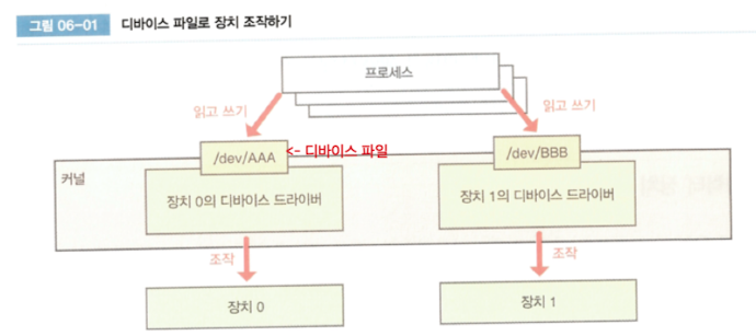 ๋๋ฐ์ด์ค ๋๋ผ์ด๋ฒ : ํ๋ก์ธ์ค๊ฐ ๋๋ฐ์ด์ค ํ์ผ์ ์กฐ์ํ๋ฉด ๋์ ์ฅ์น์ ์ ๊ทผํ๋ SW