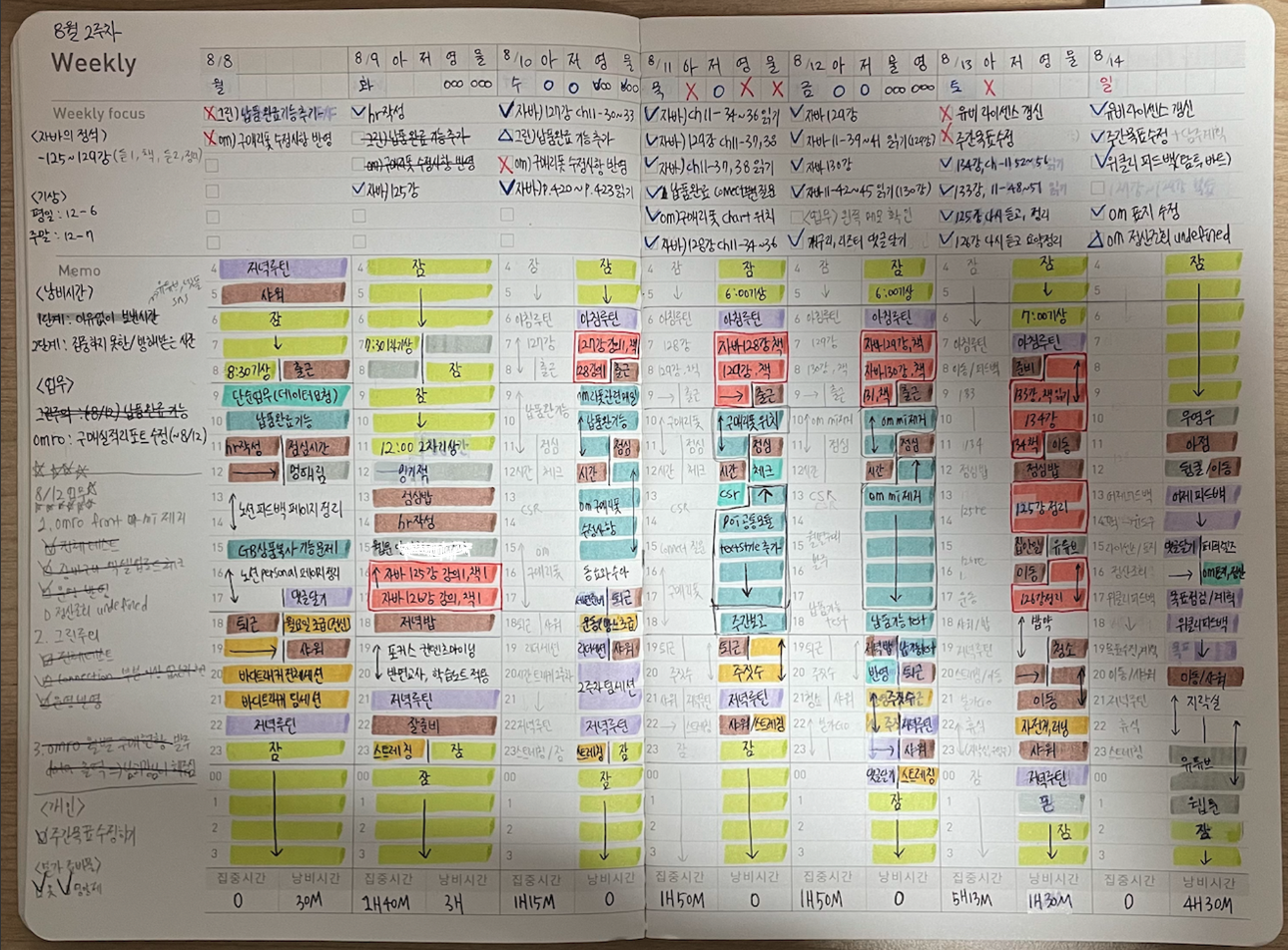 | โ๏ธ์ง์ | <๋ชฉํ>์๋ฐ์ ์ ์ : 127๊ฐ ~ 134๊ฐ(๋ฃ2, ์ ๋ฆฌ) : ์ด 8๊ฐ <์๊ฐ๊ณํ>์, ์ : 7์~8์ 30๋ถ(1์๊ฐ) ํ, ๋ชฉ, ๊ธ : 7์~9์ 30๋ถ(2์๊ฐ) ํ : 7์~12์ / 1์~6์(7์๊ฐ) ์ผ : 7์~12์(4์๊ฐ) โ ์ผ์ฃผ์ผ 19์๊ฐ ์ฌ์ฉ ๋ชฉํ |