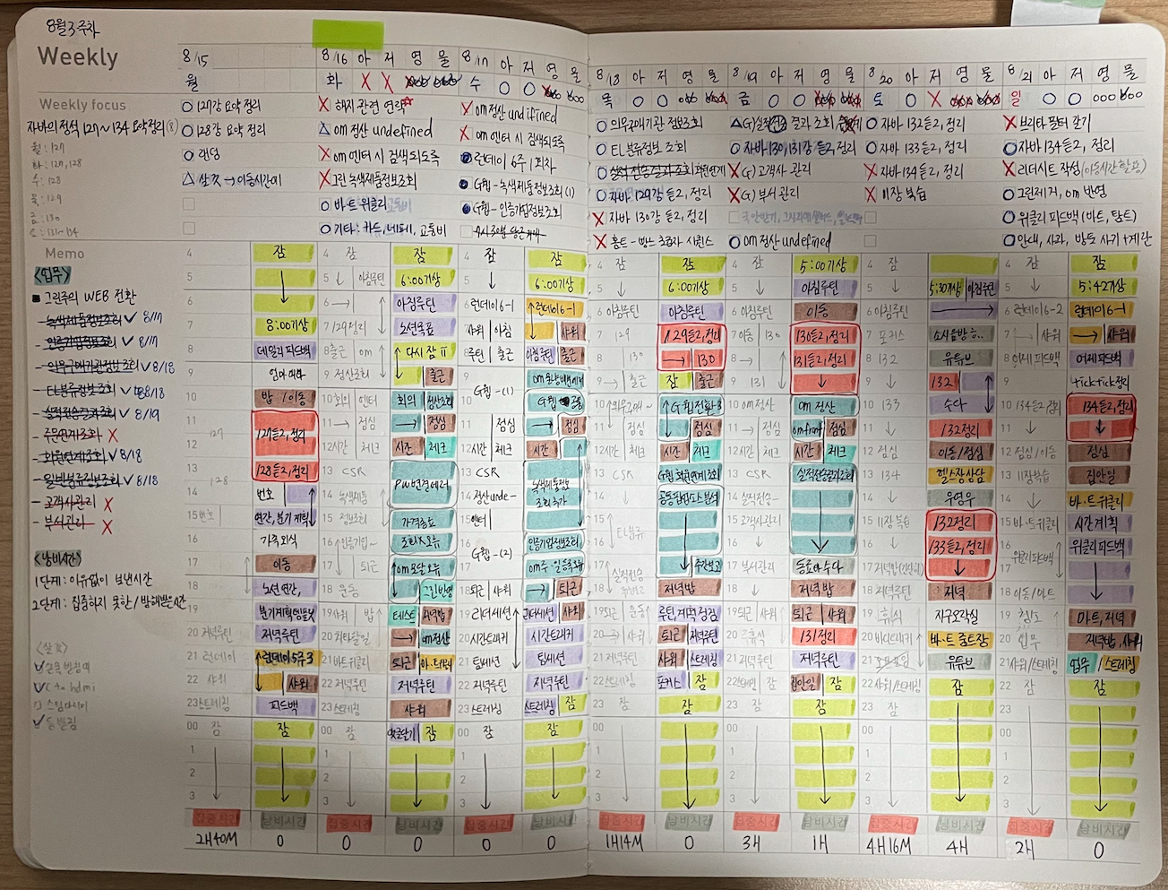 | โ๏ธ์ง์ | <๋ชฉํ>์๋ฐ์ ์ ์ : 127๊ฐ ~ 134๊ฐ(๋ฃ2, ์ ๋ฆฌ) : ์ด 8๊ฐ <์๊ฐ๊ณํ>์, ์ : 7์~8์ 30๋ถ(1์๊ฐ) ํ, ๋ชฉ, ๊ธ : 7์~9์ 30๋ถ(2์๊ฐ) ํ : 7์~12์ / 1์~6์(7์๊ฐ) ์ผ : 7์~12์(4์๊ฐ) โ ์ผ์ฃผ์ผ 19์๊ฐ ์ฌ์ฉ ๋ชฉํ | <๊ฒฐ๊ณผ>์๋ฐ์ ์ ์ 127๊ฐ ~ 134๊ฐ(๋ฃ2, ์ ๋ฆฌ) โ โ 100% ๋ฌ์ฑ |