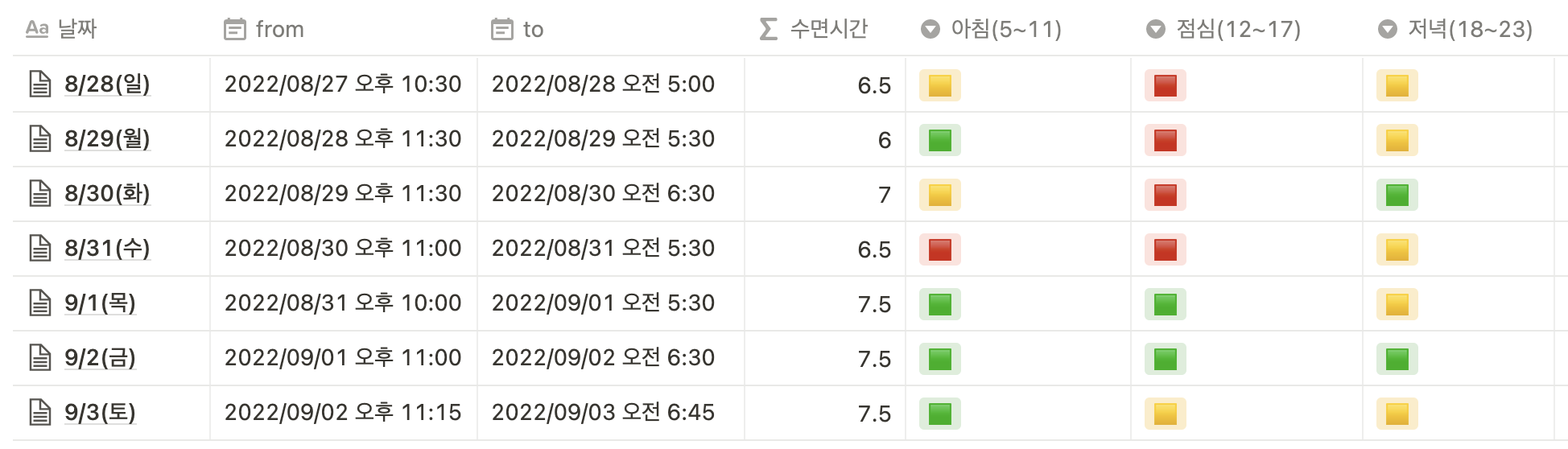 | ๐โโ๏ธ์ ์ฒด์ | 1. ์ ์ ์๋ฉด์๊ฐ ์ฐพ๊ธฐ - ๋งค์ผ ์ทจ์นจ, ๊ธฐ์์๊ฐ, ์ปจ๋์